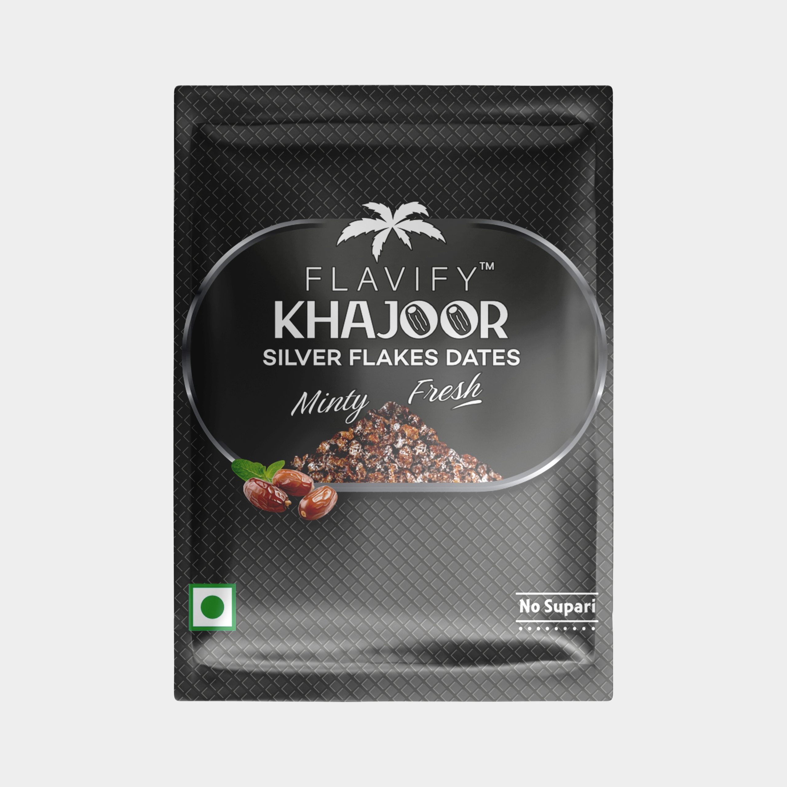 Flavify Khajoor is a luxurious and refreshing silver-coated dates treat that combines the richness of premium khajoor (dates) with the cool zing of natural mint – and absolutely no supari involved.